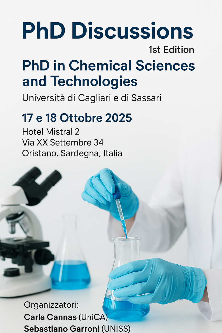 Incontri con gli studenti PhD Discussions – 1st Edition Welcome Day Matricole DiSci Uniss Diventa protagonista della Chimica del futuro! Erasmus Day 2025 Naviga la sezione Seminari Workshop Convegni Scuole Partecipazione ad eventi Incontri con gli studenti
